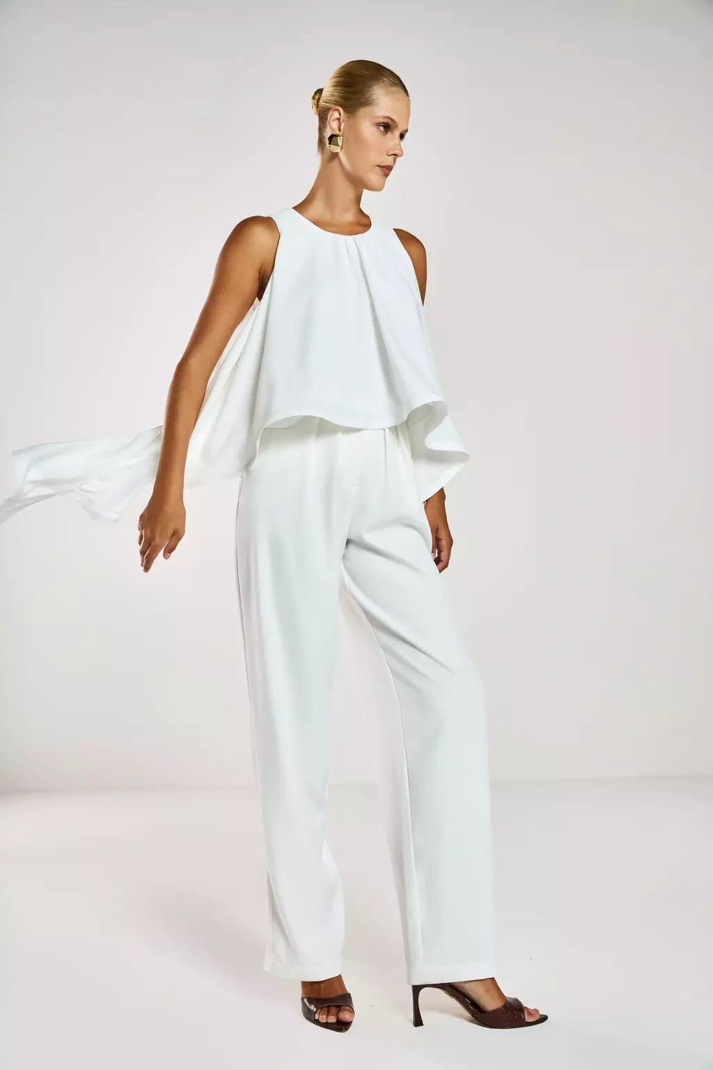 Com um decote redondo e um detalhe franzido no centro da frente, a blusa ganha um charme extra e sutil. O design é finalizado com uma prática abertura tipo gota nas costas, fechada com botões forrados, garantindo um acabamento impecável. Perfeita para elevar qualquer produção, a Blusa Valentina é a peça ideal para quem busca leveza e estilo.