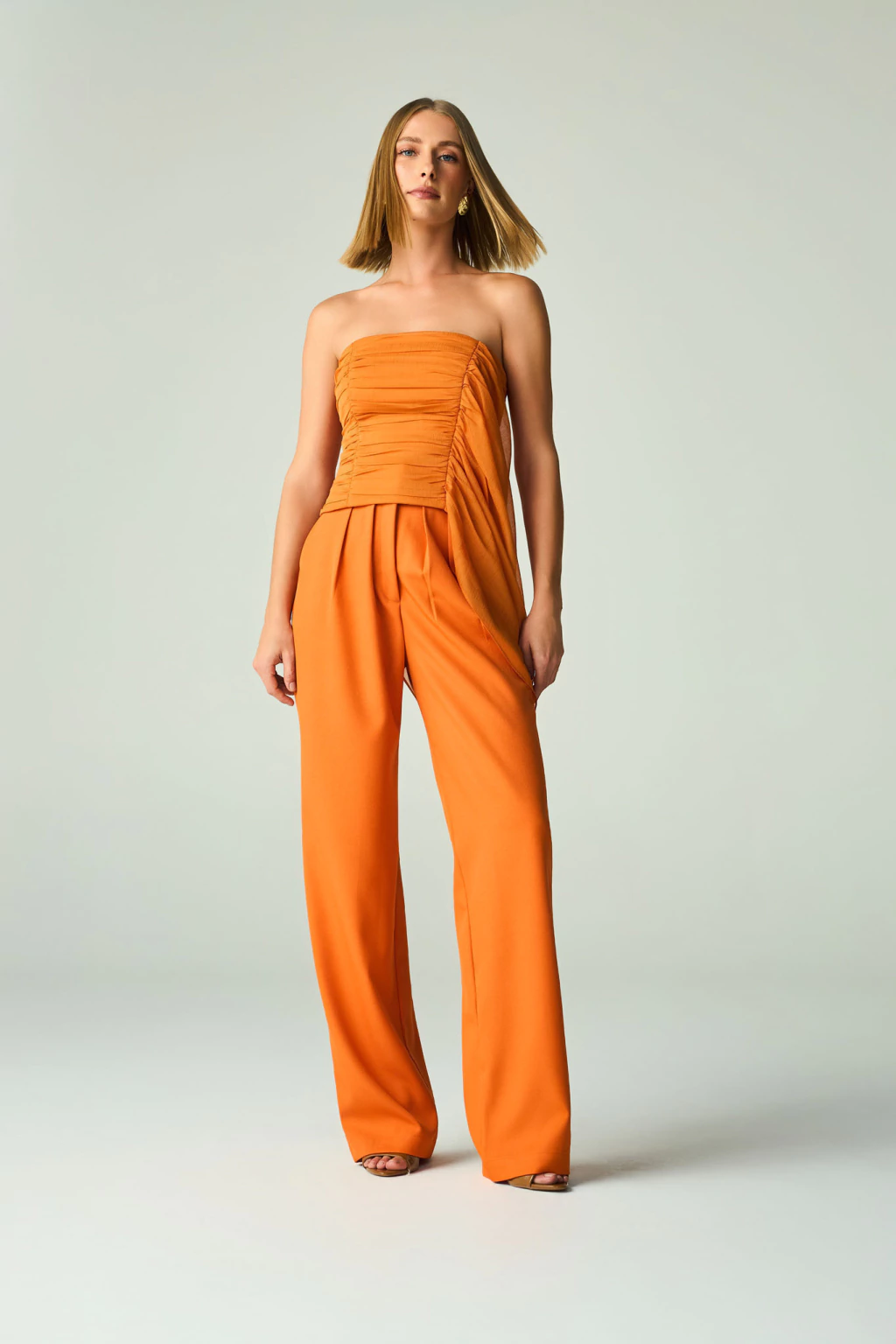 A Calça Marina traduz a alfaiataria clássica em um design moderno. Confeccionada em crepe Viena, ela apresenta bolso faca lateral e duas pregas em cada lado, que garantem ajuste confortável e movimento ao caminhar. O fechamento é composto por zíper e ganchinho interno, acompanhado de passantes que possibilitam o uso de cintos.