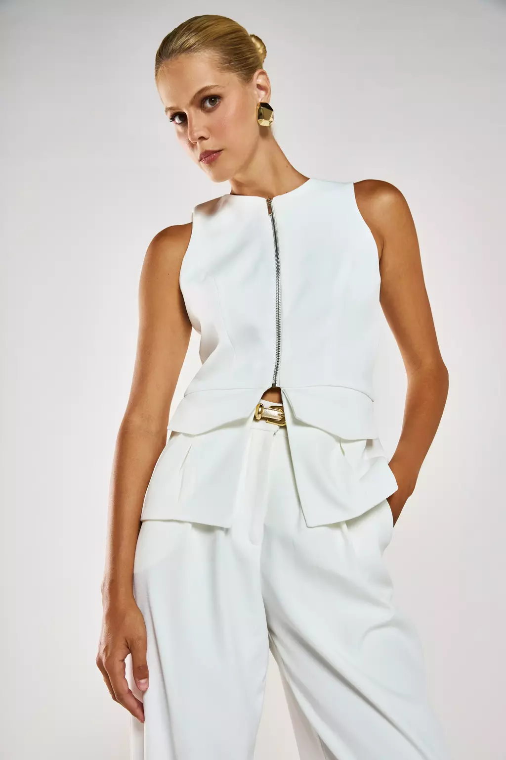 O Cinto Gil é a peça de destaque que transforma qualquer look. Com um design inovador, este cinto estilo saiote com bolsos funcionais na frente adiciona personalidade e atitude ao visual. O zíper de metal decorativo no centro e a amarração com fivelas nas costas conferem um toque utilitário e moderno, perfeito para quem busca ousadia.