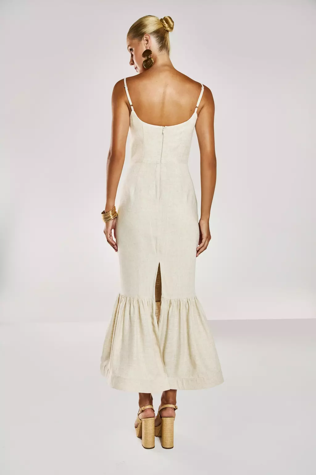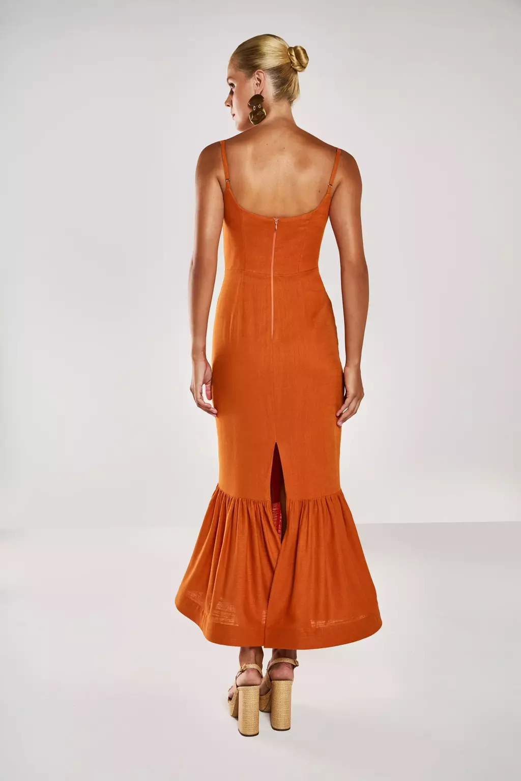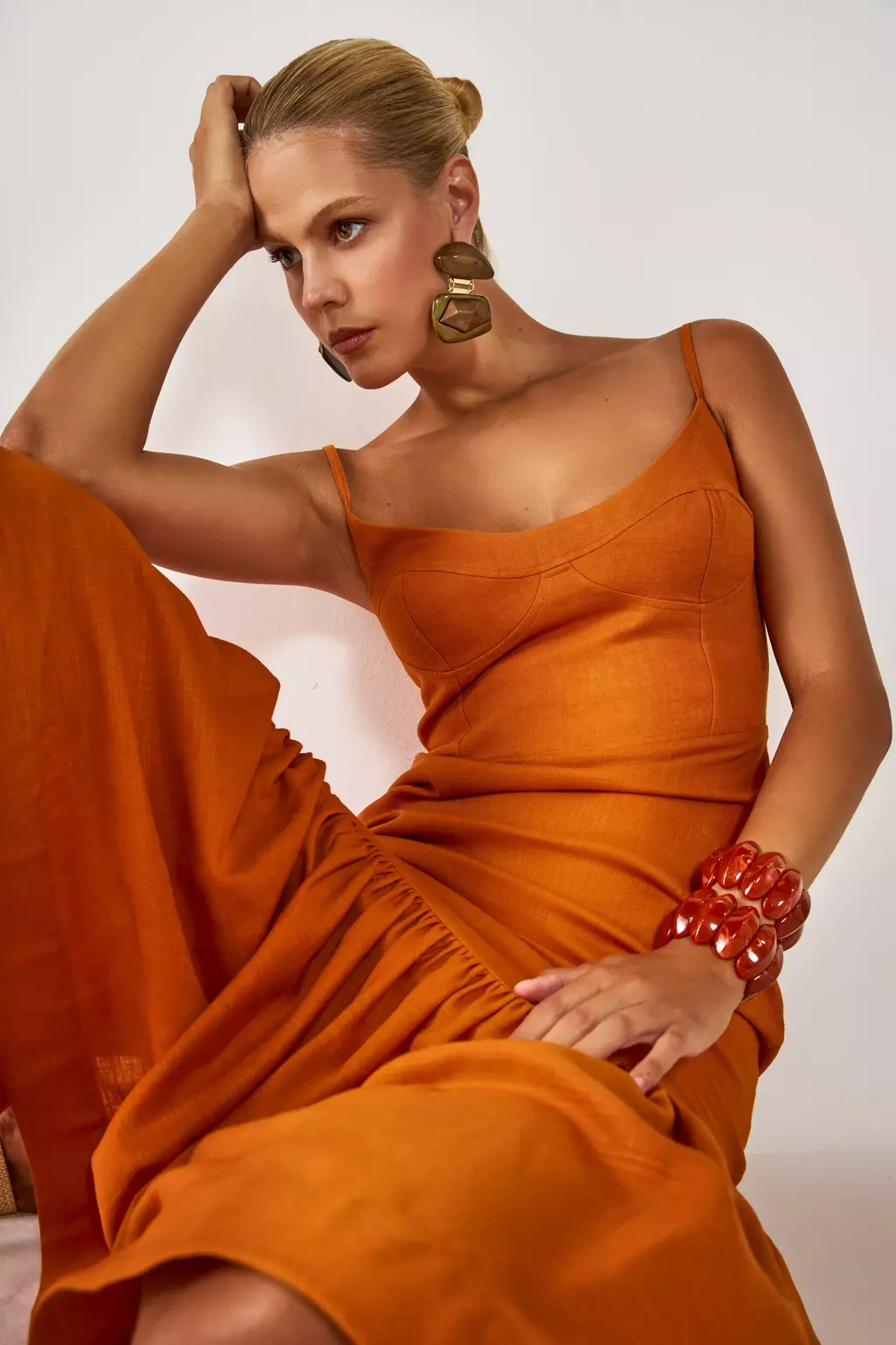 O Vestido Cris é a peça que une a sensualidade e o romantismo em um design único e impactante. Com silhueta sereia midi e alças finas reguláveis, ele se ajusta perfeitamente ao corpo, realçando as curvas com elegância. Os recortes estratégicos e estruturais no busto e na lateral do corpo garantem um caimento impecável e suporte ideal.